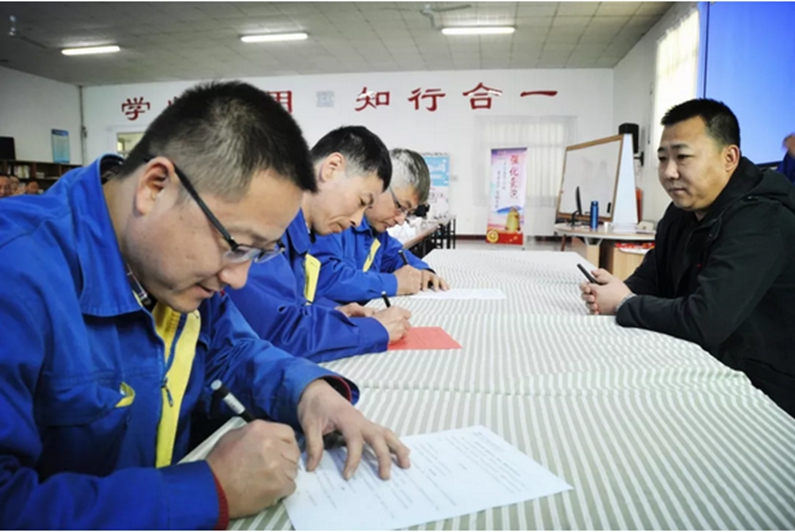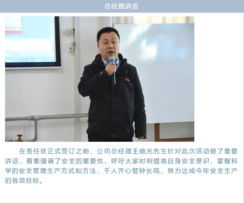 安全責(zé)任狀簽訂活動(dòng)主要分四步進(jìn)行:公布了2019年度安全生產(chǎn)總目標(biāo);發(fā)布并解釋了《安全事故考核規(guī)定》和《安全檢查管理規(guī)定》;總結(jié)了2019年EHS存在的風(fēng)險(xiǎn)并給出對策;簽訂責(zé)任狀。