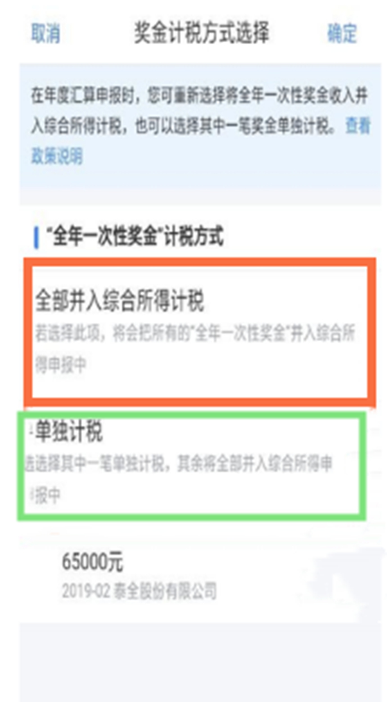 5.分別選【全部并入綜合所得稅】和【單獨(dú)計(jì)稅】,選擇退稅金額多的方式進(jìn)行退稅。