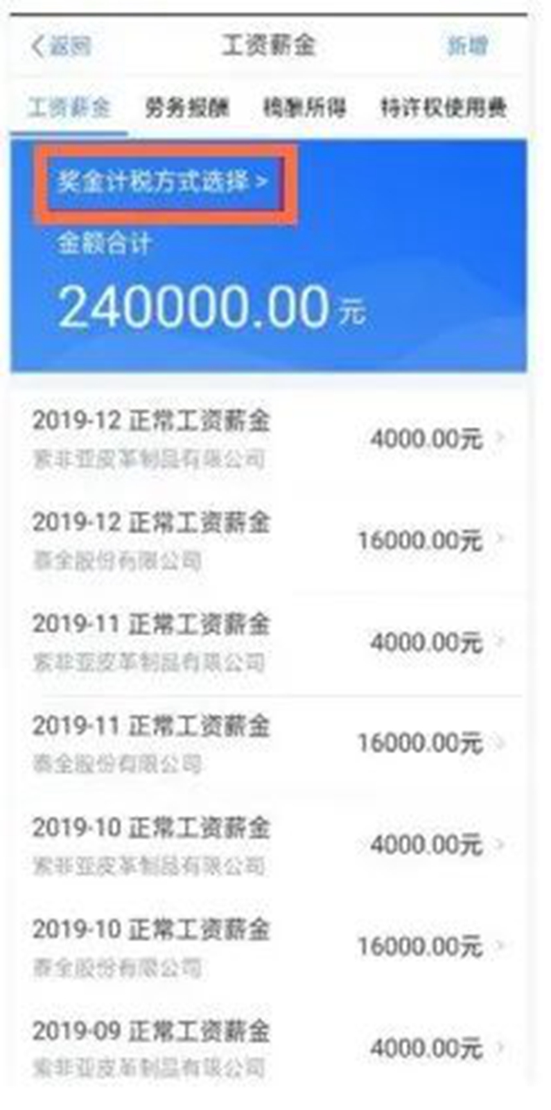 4.進(jìn)入標(biāo)準(zhǔn)申報(bào)頁(yè)面,點(diǎn)開(kāi)【工資薪金】--【獎(jiǎng)金計(jì)稅方式選擇】