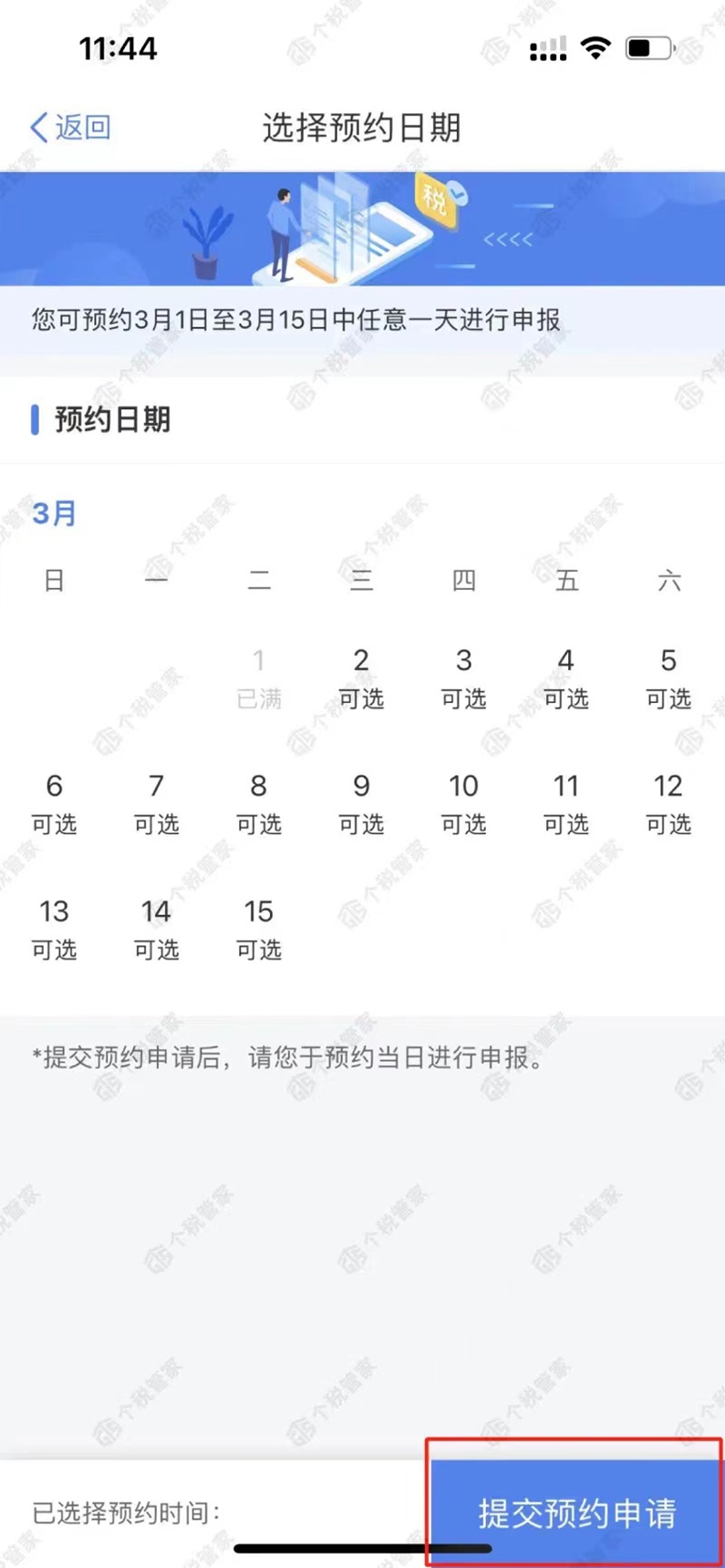 2.選擇日期,提交預(yù)約申請(qǐng),即可預(yù)約成功。