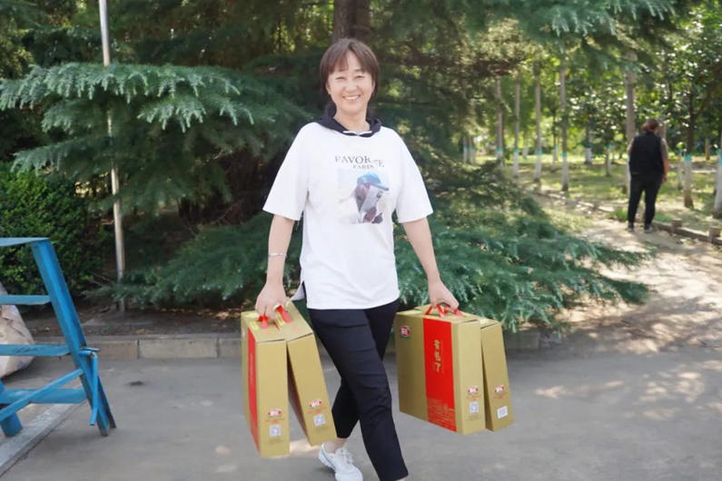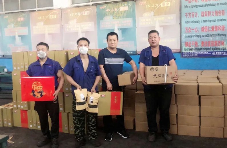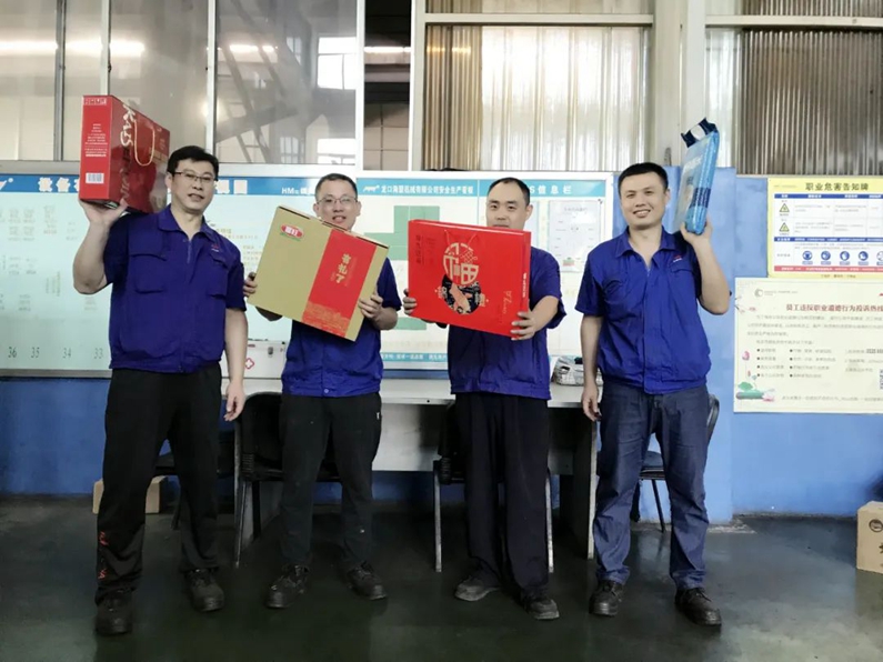 沉甸甸的禮品給大家?guī)砹藲g笑,也給員工帶來了滿滿的感動。