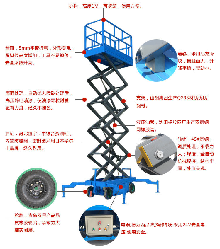 具體參數(shù)請(qǐng)參照移動(dòng)剪叉式升降平臺(tái)參數(shù),機(jī)器長(zhǎng)度需在標(biāo)準(zhǔn)機(jī)長(zhǎng)度上增加250mm。