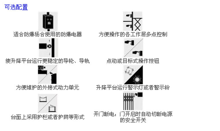 由于受建筑物或工作擱層的高度,所載物體的大小、重量及其它使用要求的影響,其型號(hào)有很多不確定因素??筛鶕?jù)實(shí)際使用環(huán)境和操作要求,對(duì)升降臺(tái)的升高、承載量、平臺(tái)面積等進(jìn)行設(shè)計(jì),以便取得理想的使用效果。